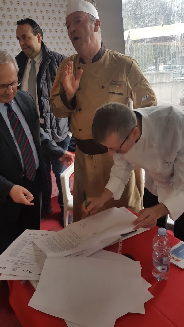 Anche per questi motivi, nel corso del Convegno, Lorenzo Pace, Presidente dell’Unione Cuochi Abruzzesi e Vinceslao Ruccolo, Presidente della Fiesa Confesercenti Regionale d’Abruzzo, con la testimonianza diretta di Daniele Erasmi, Presidente della Confesercenti Regionale, hanno sottoscritto un Protocollo d’Intesa su “Qualità e prodotti tipici, tradizione e innovazione, cultura e promozione, sana e sicura alimentazione”, con l’obiettivo di rafforzare il reciproco ruolo di testimonianza della qualità, delle eccellenze e delle tradizioni locali, per valorizzare la varietà e la ricchezza della cucina italiana e di far emergere le eccellenze enogastronomiche a partire dai produttori e trasformatori locali. Il Protocollo vuole essere anche un’adesione sostanziale all’iniziativa “2018: Anno del cibo italiano nel mondo” e un omaggio a Ovidio, D’Annunzio e Silone che con le loro Opere letterarie hanno contribuito a far conoscere i prodotti alimentari regionali.