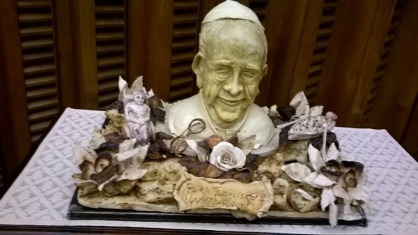 I panificatori, guidati dal Presidente Nazionale Davide Trombini, dal Vice Presidente Benvenuto Pagnoni e dal Coordinatore di Roma Cesare Tirabasso, hanno regalato al Pontefice una raffigurazione artistica di Papa Francesco realizzato dal Maestro Fornaio Fabio Albanesi.
